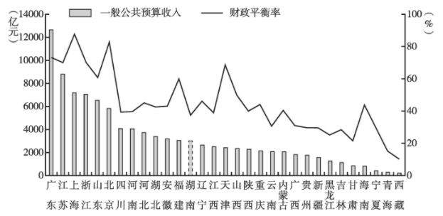 2019年全国31个省(区、市)一般公共预算收入与财政平衡率
