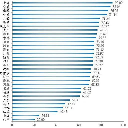 2019年各地财政困难系数排名: