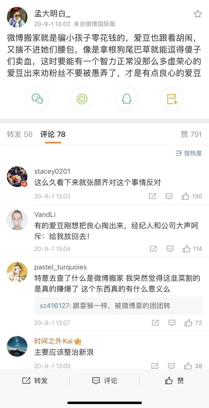 “‘倒奶’事件中,问题最大的是蒙牛,产品设计有问题,爱奇艺顶多算帮凶,粉丝作为消费者在一定程度上是无辜的,但饭圈集资必须尽快整治了。”一位资深商务从业者表示。