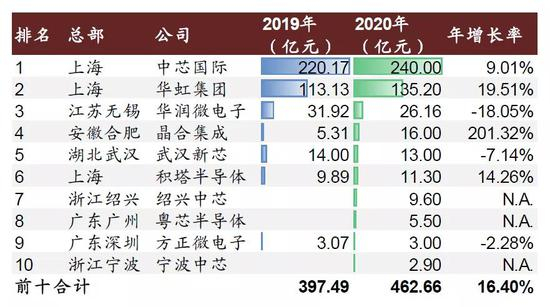 图表:2020年中国大陆前十大晶圆厂商