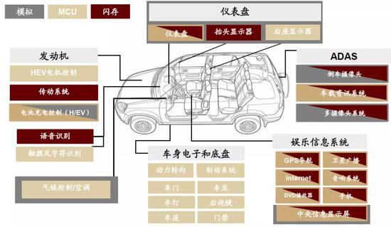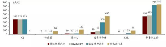 图表:不同汽车半导体价值量对比