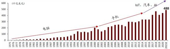 图表:1975-2020年全球半导体市场规模