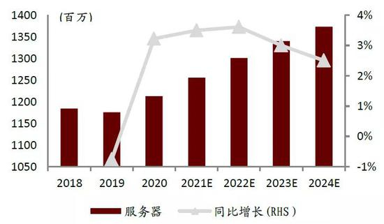 图表:2018-2024E全球服务器出货量