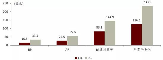 图表:4G手机单机半导体价值量 v.s. 5G手机单机半导体价值量