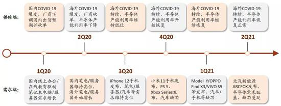 图表:疫情不同阶段对半导体产业的供需影响