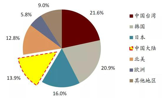 图表:2019年全球晶圆产能分布