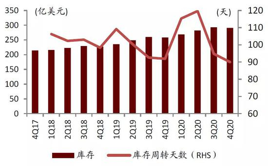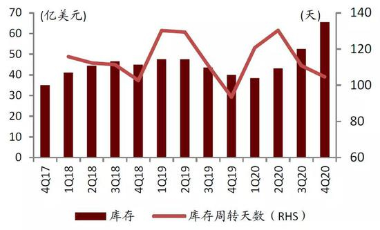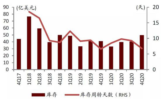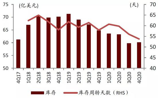 图表:4Q17-4Q20全球主要终端厂商库存情况