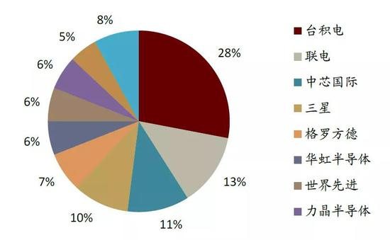 图表:2019年全球先进制程产能分布