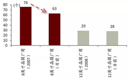 图表:全球8/12英寸晶圆厂商数量变化