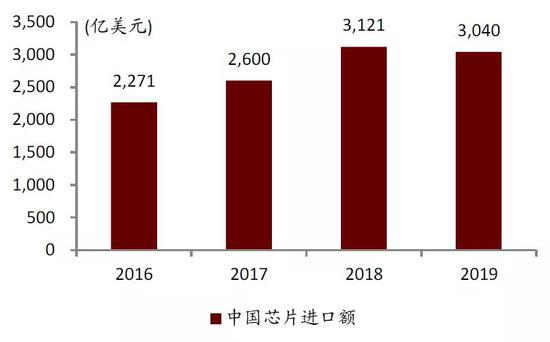 图表:2016-2019年中国芯片进口金额