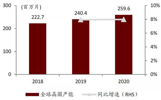 图表:2018-2020年全球晶圆产能