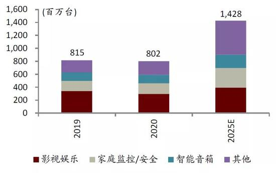 图表:2019/2020/2025E全球家电/智能家居出货量