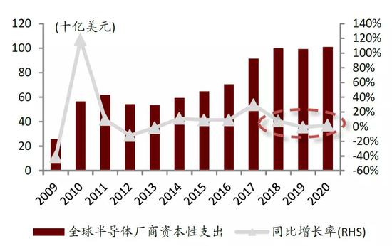 图表:2009-2020年全球半导体资本支出