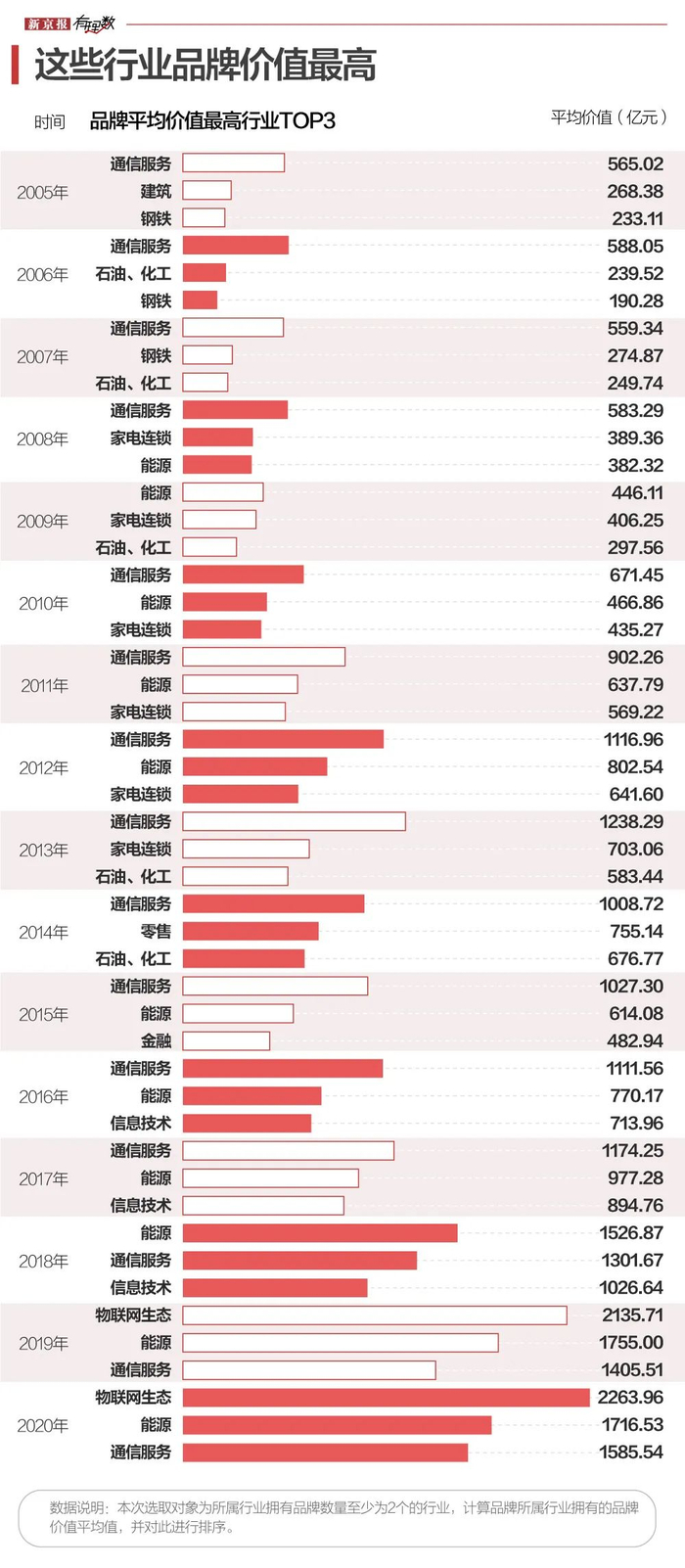 但通过历年最有价值的品牌也不难看出,以通信服务、能源、石油化工为代表的一批国企常年排在榜单前列。