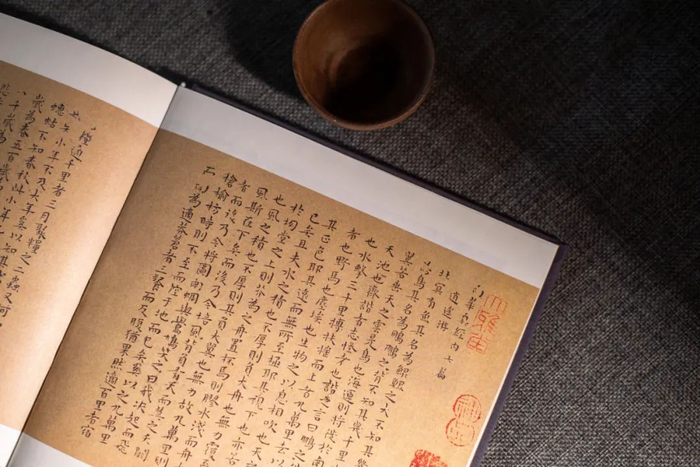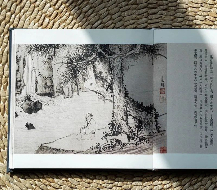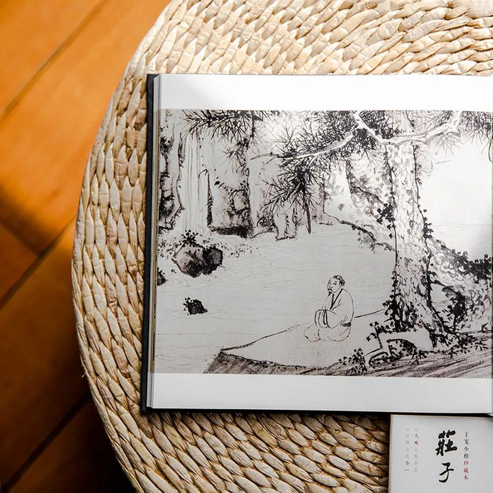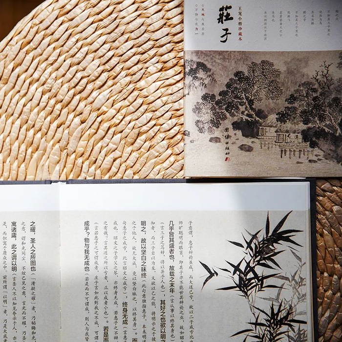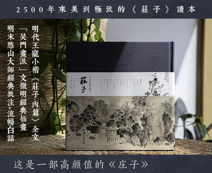 以文征明山水名作为背景、王宠小楷《南华真经内七篇》手书为骨架、明末高僧憨山大师《庄子内篇注》为神理...多管齐下、相互交融,形神兼备、气韵生动的-----《庄子》珍藏本。