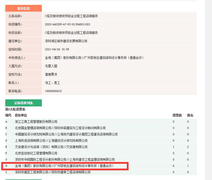 ◎C塔项目中标公示(来源:深圳市住房和建设网站)