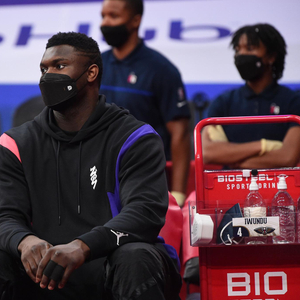 当时锡安捂着左手回到半场,在库里命中三分后,锡安回到替补席要求被换下。此后,锡安再次披挂上阵,并在最后一节登场了10分钟,帮助球队逆转取胜。