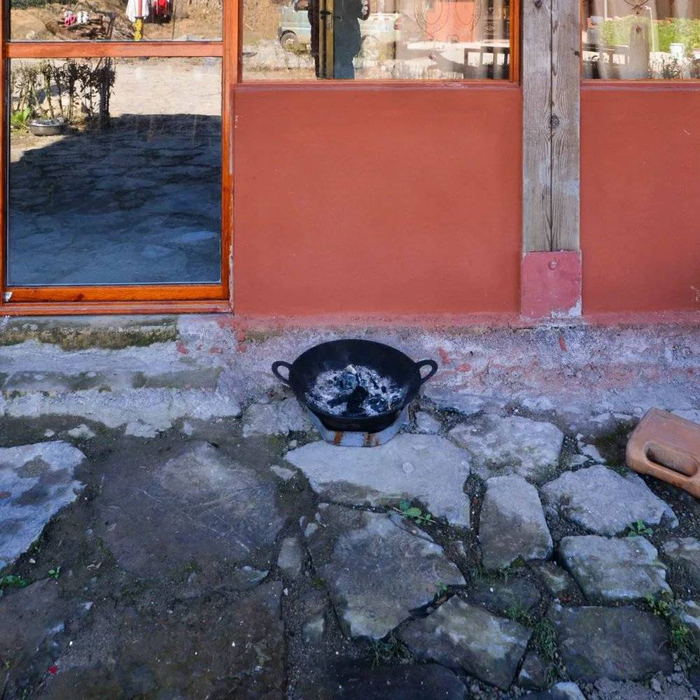 在新老村寨之间也存在着强烈的对比,佤族重视火和火炉,他们总是以火为中心,每家每户都会有个火炉在正中央,里面的火从来不灭,永远都不,但是新村没有,火炉被扔在院子外面,老奶奶就蹲在院子里的火炉旁。
