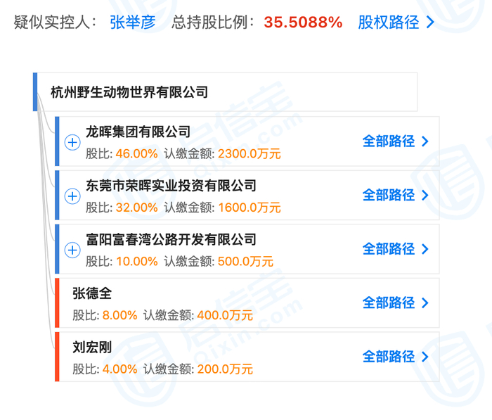 从杭野公司到富阳龙晖动物管理服务,从齐齐哈尔龙沙动植物园到三亚龙晖动物繁育,这些投资链条表明,雄鹰投资集团在动物园产业几乎形成了一个闭环投资。