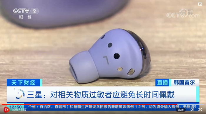 央视网5月9日消息,近日,韩国不少消费者表示,在佩戴三星新款无线耳机后,耳朵出现流脓、结痂等症状。具体是什么情况,三星方面又有怎样的回应?