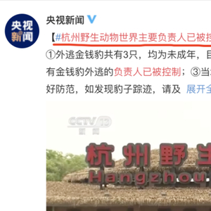 浙江省富阳区政府发布信息称,5月7日20时许,群众报警称在富阳区发现野生金钱豹。经相关部门联合调查,确定为杭州野生动物世界三只未成年金钱豹外逃(已捕获一只)。