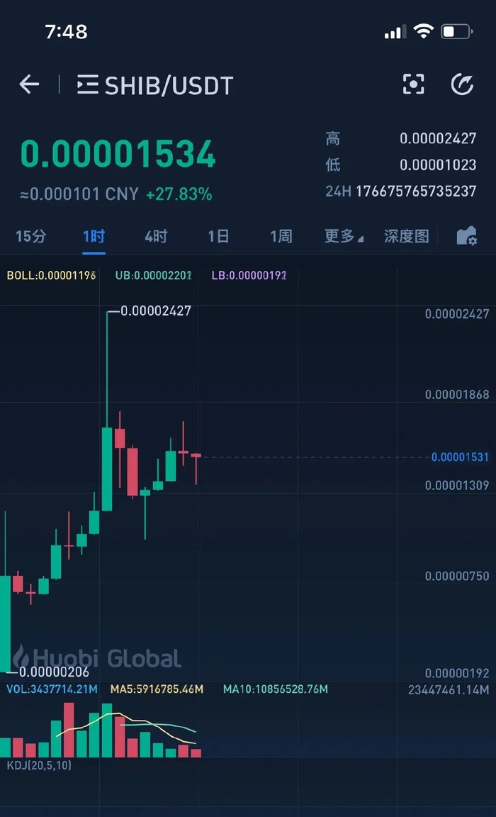 随后,柴犬币短时一根超级大阳线,日内涨超251%,暂报0.0000183美元,约合人民币0.0001元,登上各大交易所涨幅榜榜首。5月9日,其更是最高暴涨至500%,尽管随后回落,但也一度使各大交易平台遭遇短暂宕机。