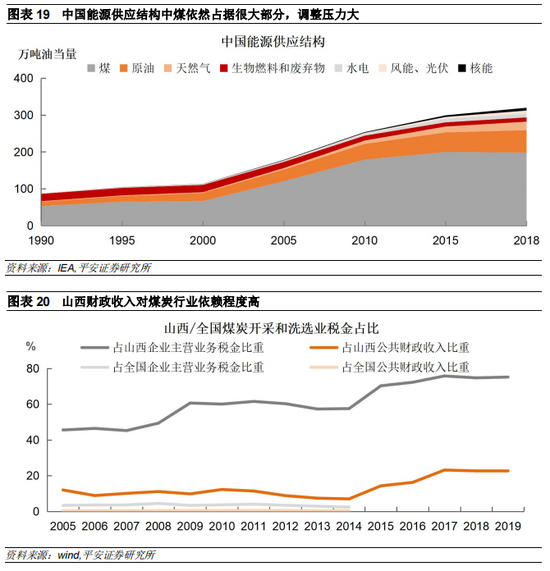 “碳中和”虽不似“供给侧改革”,但能源结构调整、产业结构调整仍然具有确定性趋势,转型风险不可谓不大(图表19),对就业和社会稳定也有一定冲击,仍然需要财政加大转移支付力度。