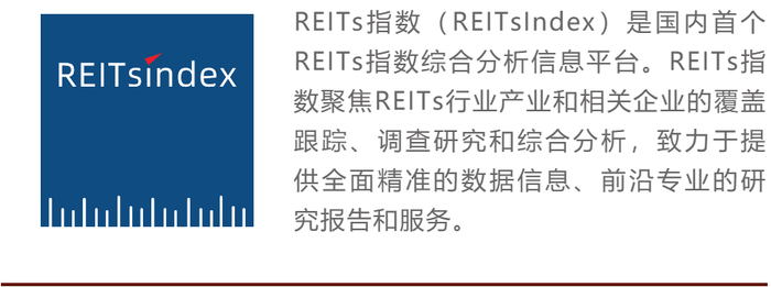 市场有风险,基金亦有风险,投资需谨慎。REITs指数特此提醒广大投资者正确认识投资基金所存在的风险,慎重考虑、谨慎决策,选择与自身风险承受能力相匹配的产品。本报告中的信息均来源于公开资料及合法获得的相关内部外部报告资料,REITs指数对这些信息的准确性及完整性不作任何保证,不保证其中的信息已做最新变更,也不保证相关的分析不会发生任何变更。本报告中的内容和意见仅供参考,在任何情况下,本报告中的信息或所表述的意见均不构成对任何人的投资建议。