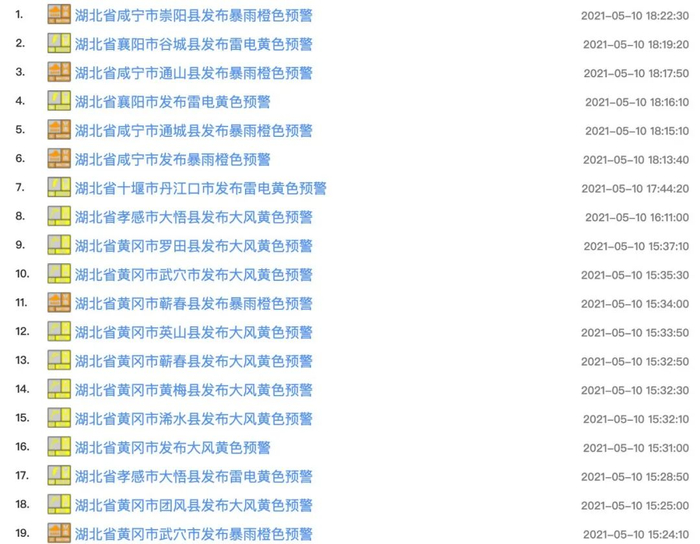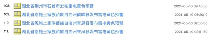 5月10日,湖北多地遭遇强对流天气,湖北气象部门连发100多条冰雹、暴雨、大风、雷电预警。