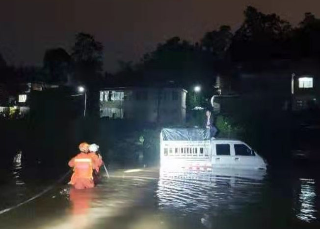 暴雨和冰雹造成贵阳市观山湖区、白云区和小河区地势较低区域内涝严重,多辆轿车在行驶中被迫熄火,被困洪水中,各区消防站接警后迅速展开救援。