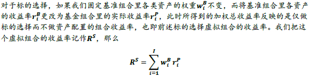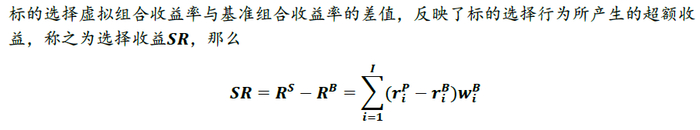 标的选择虚拟组合收益率与基准组合收益率的差值,反映了标的选择行为所产生的超额收益,称之为选择收益 ,那么