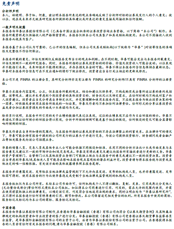 本公众平台不是华泰证券股份有限公司(以下简称“华泰证券”)研究所官方订阅平台。相关观点或信息请以华泰证券官方公众平台为准。根据《证券期货投资者适当性管理办法》的相关要求,本公众号内容仅面向华泰证券客户中的专业投资者,请勿对本公众号内容进行任何形式的转发。若您并非华泰证券客户中的专业投资者,请取消关注本公众号,不再订阅、接收或使用本公众号中的内容。因本公众号难以设置访问权限,若给您造成不便,烦请谅解!本公众号旨在沟通研究信息,交流研究经验,华泰证券不因任何订阅本公众号的行为而将订阅者视为华泰证券的客户。