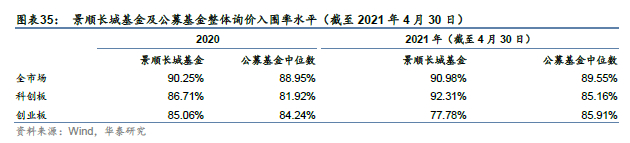 IPO的活跃为打新策略提供了良好的土壤;但另一方面,注册制板块打破了询价的市盈率红线,科创板和创业板的询价难度有所提升,询价入围率对实际打新的成功率和收益有较大影响。由于同一基金公司的询价策略通常接近,我们从公司层面对询价情况进行统计。