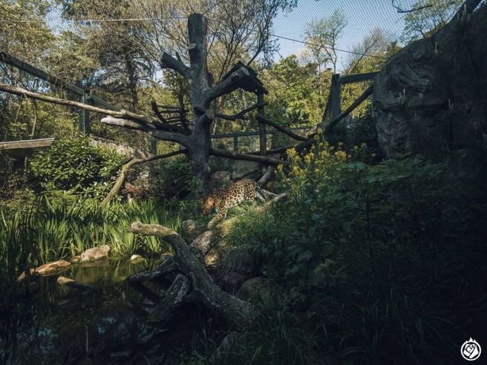 我们可以看看这里的豹展区:这个展区借了山势,给了豹一块山坡。这些山坡当然不是水泥底,能够见土,就有了更多的可能。
