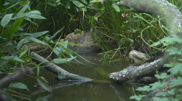而在那些没有山坡的笼舍中,园方放置了大量丰富环境的实体,有高大的爬架,倒伏的死木,面积不大但搭配有水边植物的水潭……这样的环境,让人觉得很舒服。也给动物提供了更多的可能性和选择。
