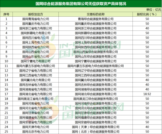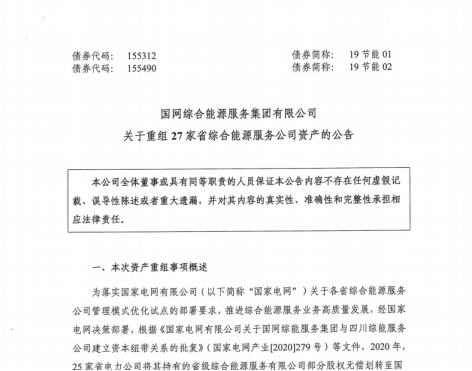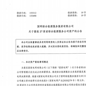 近日,国网综合能源服务集团有限公司(以下简称“国网综能”)发布关于重组27家省综合能源服务公司资产的公告。据该公告显示,2020年,25 家省电力公司将其持有的省级综合能源服务有限公司部分股权无偿划转至国网综能。此外,国网综能对国网雄安综合能源服务有限公司、国网西藏综合能源服务有限公司、国网湖北综合能源服务有限公司进行了增资扩股,至2020年末,与27家省综合能源公司建立资本纽带关系并实现了对其并表。