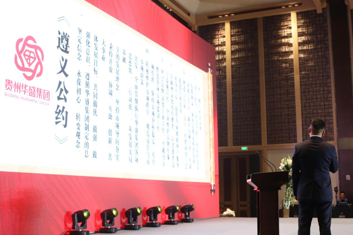 在本次会议上,遵义市(仁怀市)酒业协会副秘书长杨必刚致开场词,贵州华盛(集团)有限公司董事长涂宸豪,贵州华盛(集团)有限公司总经理陈锐,和君咨询酒水事业部总经理李振江,为与会人员带来了“贵州华盛集团发展规划”、“贵州华盛集团市场运营”、“酱香型白酒市场发展趋势”、等主题发言。在本次会议上,还同期举行了贵州华盛集团与和君咨询战略签约仪式、贵州华盛集团《遵义公约》发布仪式等活动。