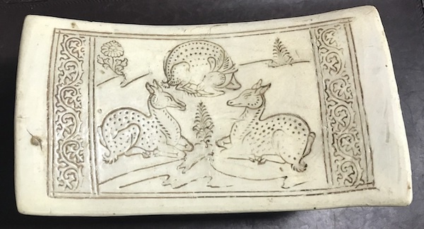图4 井陉窑白釉赭彩印花鹿纹云头式枕 宋 天津博物馆藏