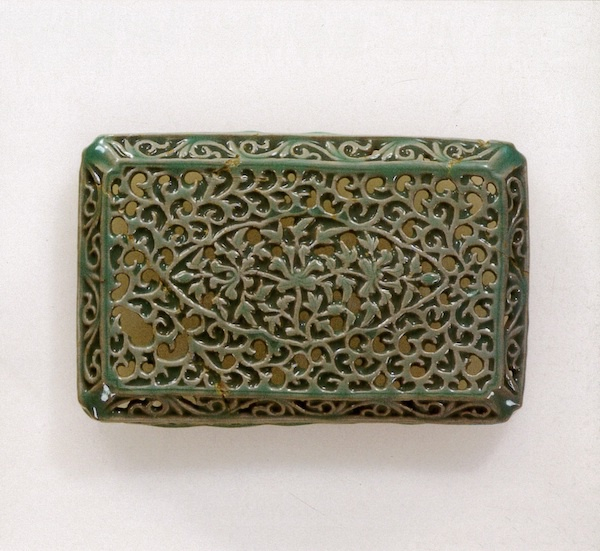 图21a 青瓷镶嵌透雕唐草纹盒(盒面)12世纪 日本东京国立博物馆藏