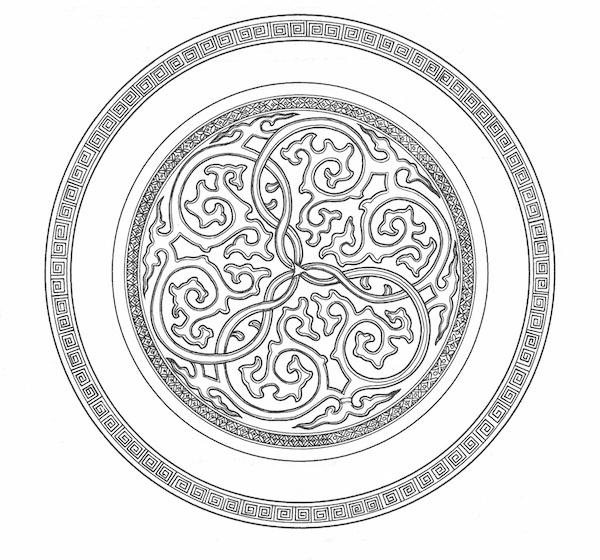 四、唐草纹传入中国无论是所谓半棕叶唐草纹(忍冬纹)或葡萄唐草纹都源自古希腊,前者出现于公元前6世纪,是结合迈锡尼文明彩陶唐草和亚述半棕叶而成的装饰纹样,后传至西亚、波斯,经由中亚再及于印度和中国。始见于公元前4世纪的葡萄唐草,也是通过相似的途径传入中亚等地。