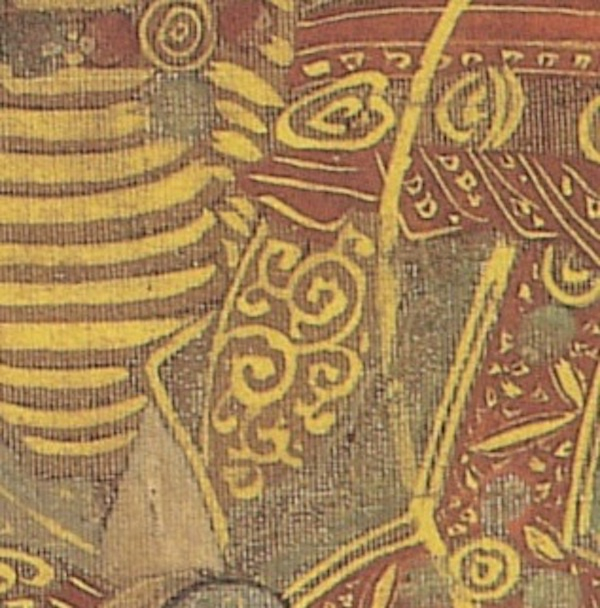 图32 葡萄唐草纹染韦 奈良时代 8世纪 日本奈良县立橿原考古学研究所附属博物馆藏