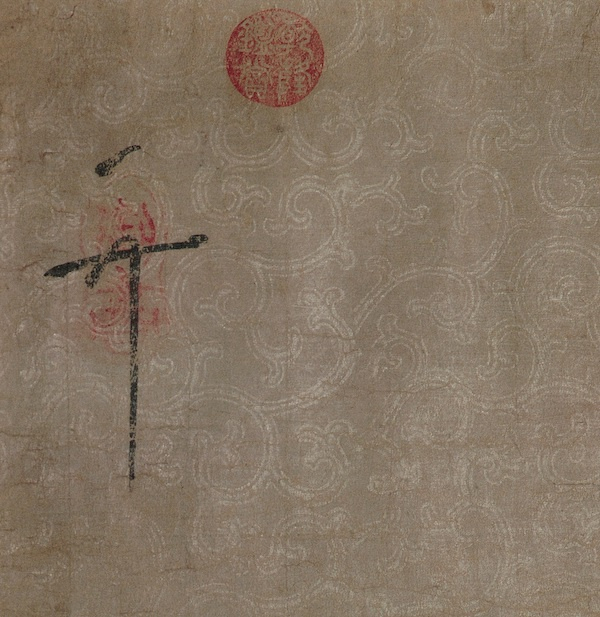 图14 宋徽宗《池塘秋晚图》所用“龙牙蕙草”笺纸 台北故宫博物院藏