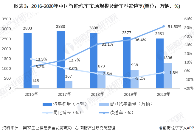 2021年中国智能汽车行业市场现状与发展前景分析 2025年智能汽车数量将达2800万辆