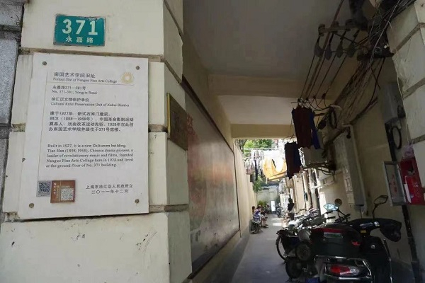 党课先行进到位于永嘉路371号的南国艺术学院旧址,这里曾是《义勇军进行曲》的词作者田汉的寓所。1934年,上海电通影片公司在中国共产党电影小组的直接领导下成立,并邀请田汉尽快编写一个宣传抗日救亡精神的剧本。田汉以知识青年参加抗日、义勇军的故事为蓝本,创作出《凤凰的再生》(后更名为《风云儿女》)剧本梗概。在剧本里,田汉借剧中男主角辛白华之手,创作出了一首激情奔放的自由体诗《万里长城》,这首诗的第一节就是《义勇军进行曲》的原版歌词。