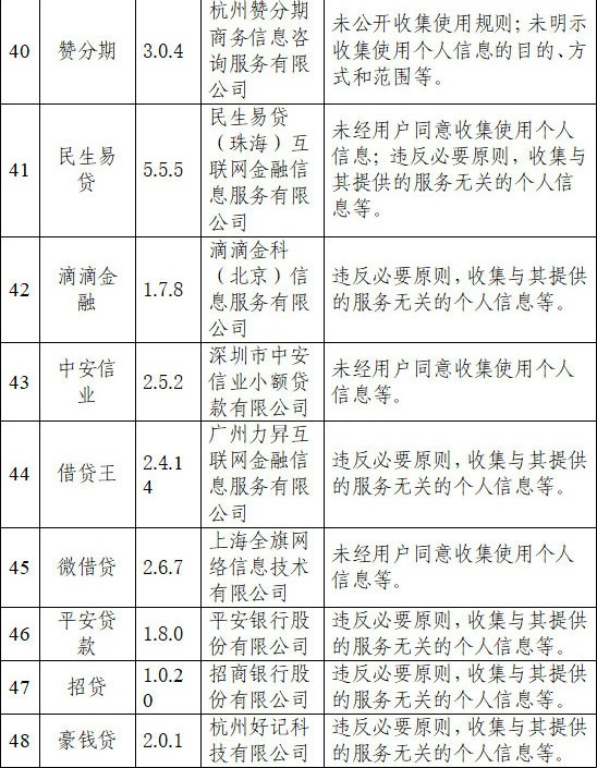 还有一些消费金融公司、小贷公司的APP也因违规收集使用个人信息被通报。