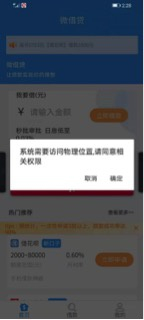 如果选择禁止访问地理位置,微借贷APP会提示:“系统需要访问物理位置,请同意相关权限。”