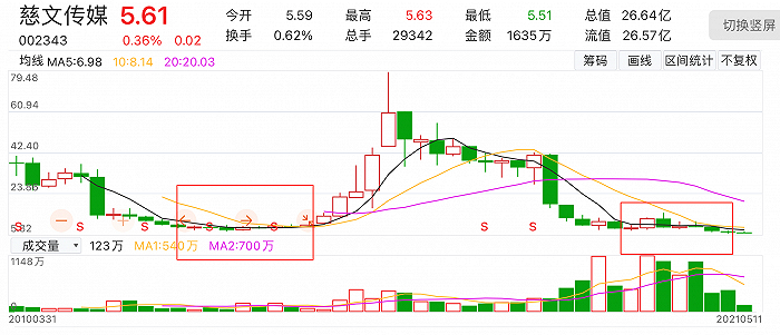 需要看到的是,自2020年疫情以来,慈文传媒业绩不振,其股价持续下滑。财务数据显示,去年该公司实现营业收入6.74亿元,同比减少42.45%;去年亏损3.52亿元,2019年同期则盈利1.65亿元。2021年一季度,其营收同比增761.64%至1222.96万元,亏损同比扩大7.1%至1647.58万元。股价方面,在2020年跌掉46.82%后,今年以来,该股继续下跌12.89%。