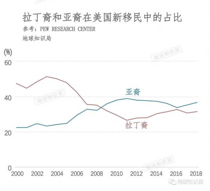 虽然外界常关注的是黑白矛盾,但非洲裔更多是历史问题,亚裔的占比在近些年甚至超过了美国的邻居们