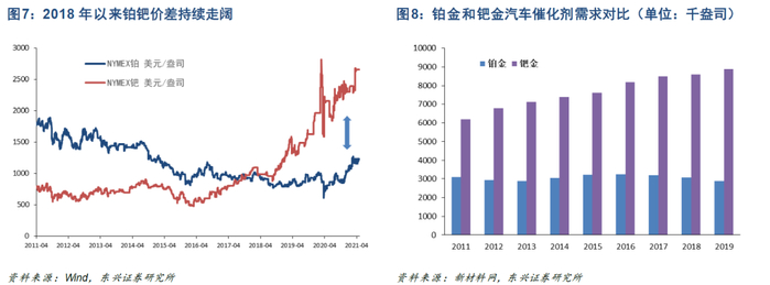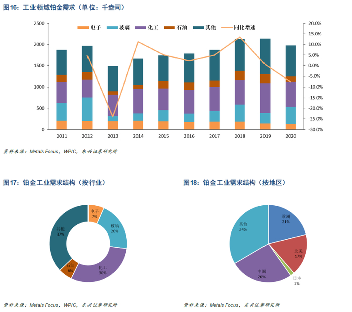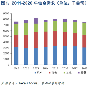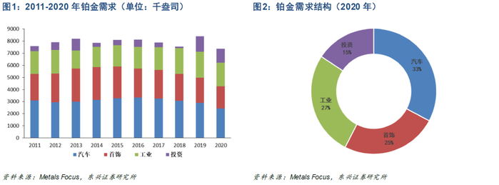 本文节选自东兴证券研究所已于2021年5月12日发布的《铂金行业深度报告(二):全球铂金需求渐入结构性扩张时期》报告,具体分析内容(包括风险提示等)请详见报告。若因对报告的摘编产生歧义,应以完整版报告内容为准。