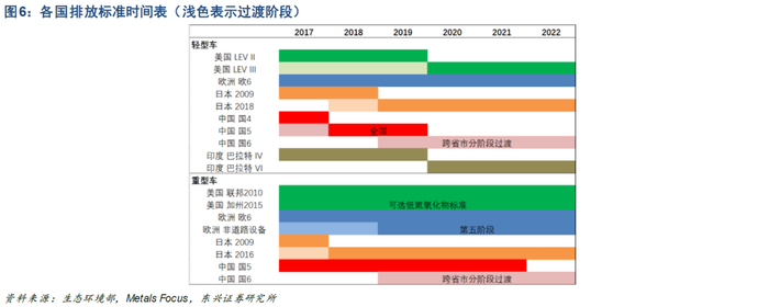 2.1 汽车尾气催化剂:排放标准政策性趋严有望提振铂金装填量